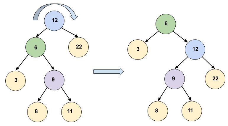 Pseudo Code: RightRotate(node x) 1 y = left[x] //Set y 2 left[x] = right[y] //Turn y's right subtree into x's right subtree. 3 if right[y] != NIL: 4 then parent[right[y]] = x 5 parent[y] = parent[x] // Link x's parent to y. 6 if parent[x] == NIL: 7 then root = y 8 else if x == left[parent[x]] 9 then left[parent[x]] = y 10 else 11 right[parent[x]] = y 11 right[y] = x //Put x on y's right. 12 parent[x] = y