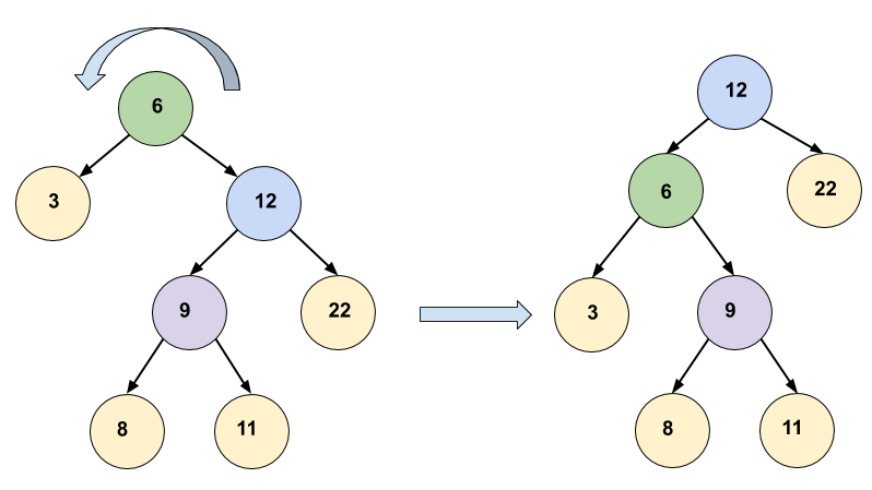 Pseudo Code: LeftRotate(node x) 1 y = right[x] //Set y 2 right[x] = left[y] //Turn y's left subtree into x's right subtree. 3 if left[y] != NIL: 4 then parent[left[y]] = x 5 parent[y] = parent[x] // Link x's parent to y. 6 if parent[x] == NIL: 7 then root = y 8 else if x == left[parent[x]] 9 then left[parent[x]] = y 10 else 11 right[parent[x]] = y 11 left[y] = x //Put x on y's left. 12 parent[x] = y