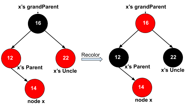 4. No Red–Red parent child relationship. In other words If a node is red, then both its children are black.