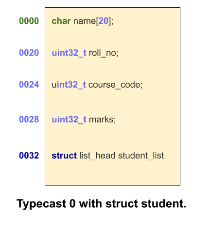 struct student { char name[20]; int roll_no; int course_code; int marks; struct list_head student_list; };